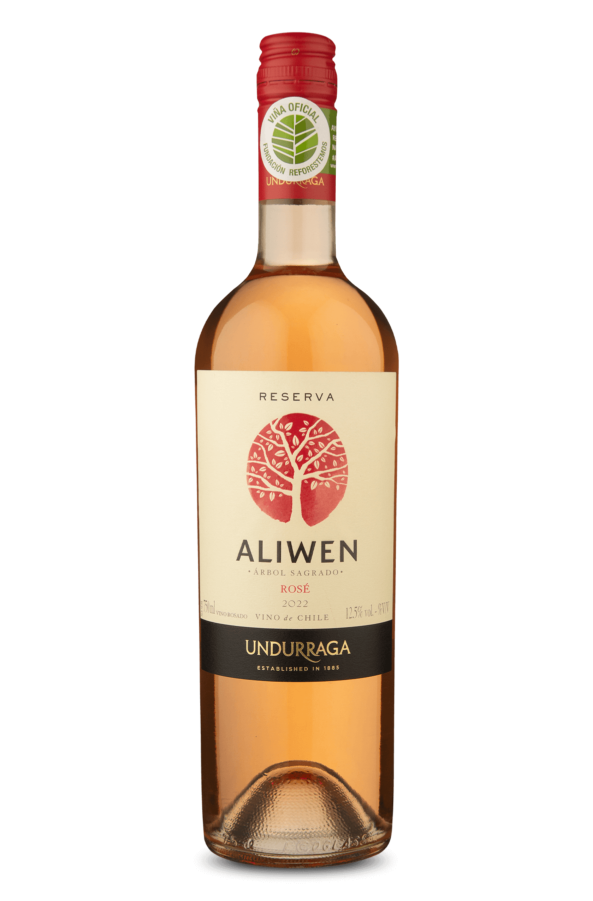 Aliwen significa árvore sagrada em Mapudungun, um dos povos indígenas nativos do Chile, reflete a diversidade da Geografia chilena, representa a sombra, frescura e refúgio. Este rosé é um blend das uvas Cabernet Sauvignon e Merlot feito pela renomada vinícola Undurraga com uvas cuidadosamente selecionadas do Valle de Colchagua. Um exemplar que faz parte da Linha Reserva da vinícola, criado para almas aventureiras, os amantes da natureza e aos que buscam desfrutar o melhor da vida cotidiana. Um exemplar expressivo nos aromas frutados, em boca é leve, agradável e muito refrescante! Para cada garrafa de Aliwen comprada no mundo, você estará ajudando na campanha de reflorestamento com árvores nativas na Patagônia chilena.