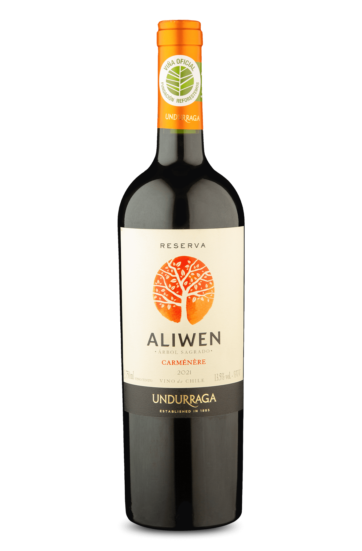 Aliwen significa árvore sagrada em Mapudungun, um dos povos indígenas nativos do Chile, reflete a diversidade da Geografia chilena, representa a sombra, frescura e refúgio. Um suculento e bem estruturado vinho da uva Carménère feito pela renomada vinícola Undurraga com uvas cuidadosamente selecionadas do Valle del Rapel, Chile. Um exemplar que faz parte da Linha Reserva da vinícola, criado para almas aventureiras, os amantes da natureza e aos que buscam desfrutar o melhor da vida cotidiana. É um vinho moderno, elegante, complexo, envolvente e fácil de beber. Aventure-se! Para cada garrafa de Aliwen comprada no mundo, você estará ajudando na campanha de reflorestamento com árvores nativas na Patagônia chilena.