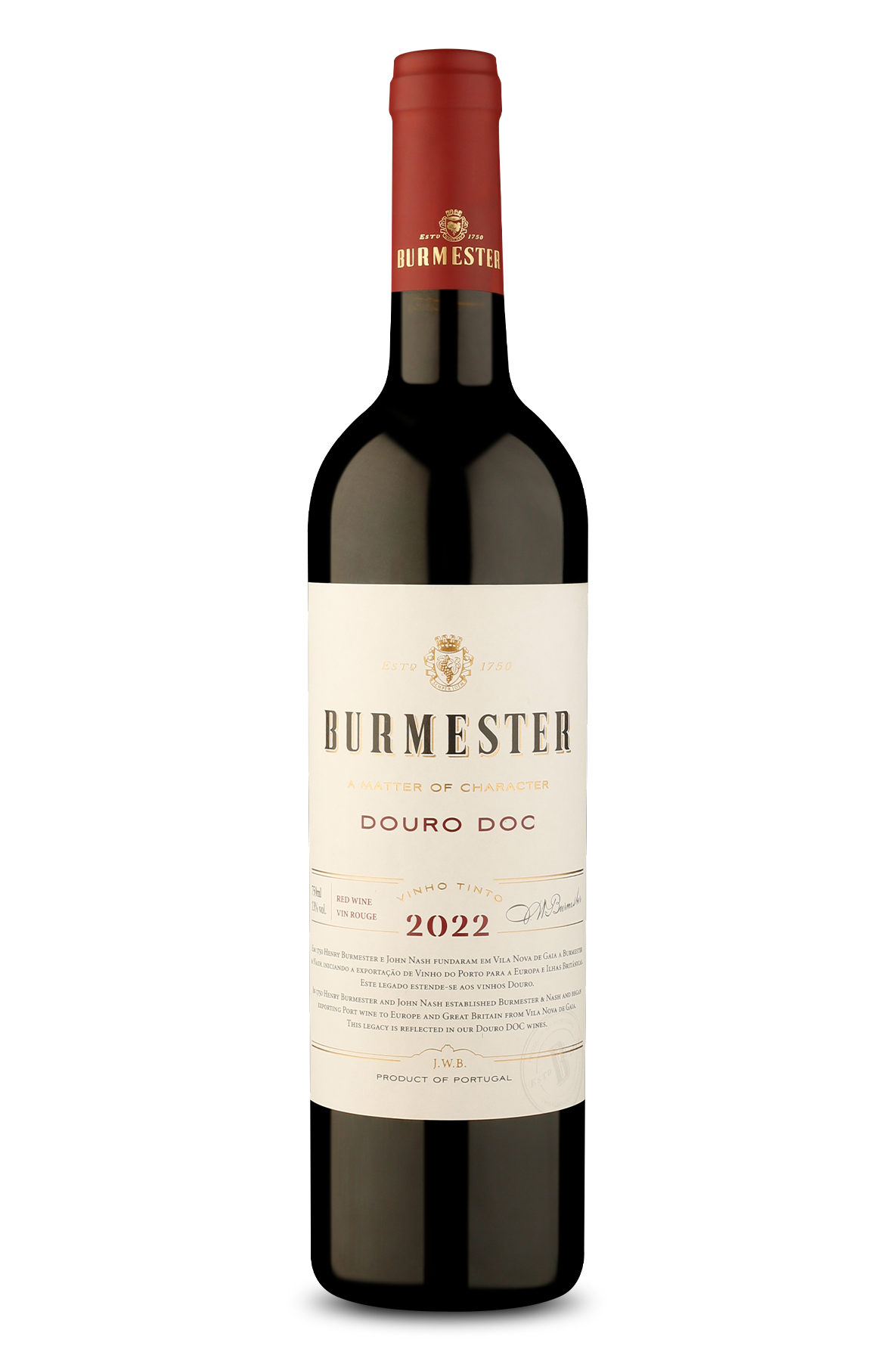 Produzido no Douro, Portugal, pela renomada vinícola Burmester que tem mais de 260 anos de tradição, conhecimento e história na produção de vinhos na D.O.C. Douro. Esse tinto traz três uvas muito representativas dessa região vitivinícola, a Tinta Roriz, a Touriga Nacional e a Touriga Franca provenientes das sub-regiões Cima Corgo e Douro Superior na D.O.C. Douro, a mais antiga região demarcada do mundo, demarcada em 1756 pelo Marquês de Pombal, e reconhecida pela UNESCO como patrimônio da humanidade. Parte do vinho amadurece por 9 meses em barricas de carvalho francês e americano para amaciar os taninos e agregar estrutura e complexidade sem atropelar as características das uvas e do terroir. Este exemplar apresenta expressivos aromas de frutas vermelhas com nuances de chá preto, cacau e toque mineral. Na boca, é um vinho elegante, bem estruturado, vibrante e com um final profundo e harmonioso.