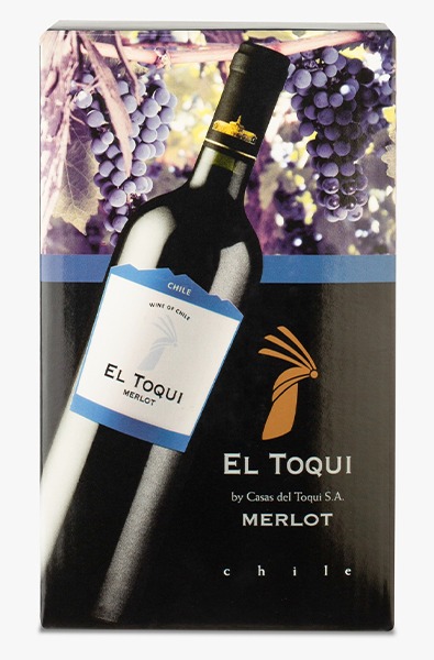 El Toqui é uma linha de entrada da renomada vinícola chilena Casas del Toqui de vinhos jovens, com perfil fácil de beber e macios no paladar. Este exemplar é uma embalagem Bag in Box ("bolsa em caixa") de 2 litros, uma forma de envase e armazenamento do vinho em uma embalagem bem estruturada em diversas camadas, onde o vinho é envazado em uma embalagem plástica e é acomodado dentro de uma caixa de papelão no intuito de prolongar a vida útil. Esta embalagem tem uma torneira por onde o vinho é servido, e o processo de acionamento faz com que o saco plástico continue selado a vácuo, o que assegura o vinho se manter ali por mais tempo mesmo depois de servida a primeira taça. Uma excelente opção para quem busca embalagens com maior volume de vinho, seja para servir em eventos ou restaurantes, com a chance de guardar o vinho de forma adequada depois de aberto. Um Merlot descomplicado, frutado, macio e encantador, ideal para as mais diversas ocasiões e os mais diversos paladares.