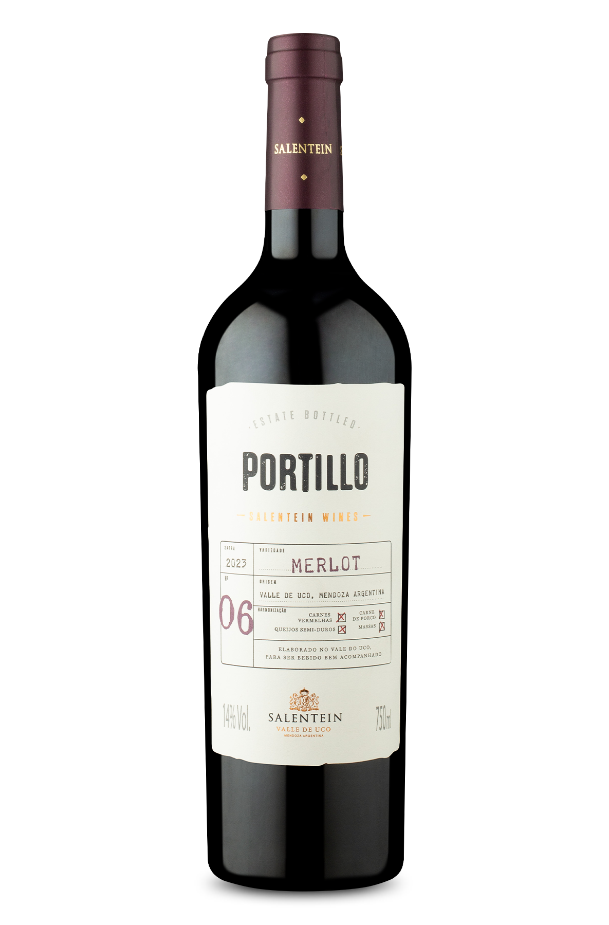 Portillo é uma coleção de vinhos desenvolvida pela Bodegas Salentein, a primeira vinícola estabelecida no Vale do Uco, projetada para se misturar respeitosamente com o meio ambiente. Com vinhedos a 1.100 metros de altitude, a vinícola trabalha apenas com gravidade, com foco no manejo delicado da fruta, para obtenção de sua máxima expressão neste terroir. Tecnologia e tradição se combinam para garantir a mais alta qualidade de uva na criação de vinhos de classe mundial. Um vinho alegre, cheio de vida, fruta e frescor, com toda tipicidade da Merlot, perfeito para momentos descontraídos. Adequado para veganos.